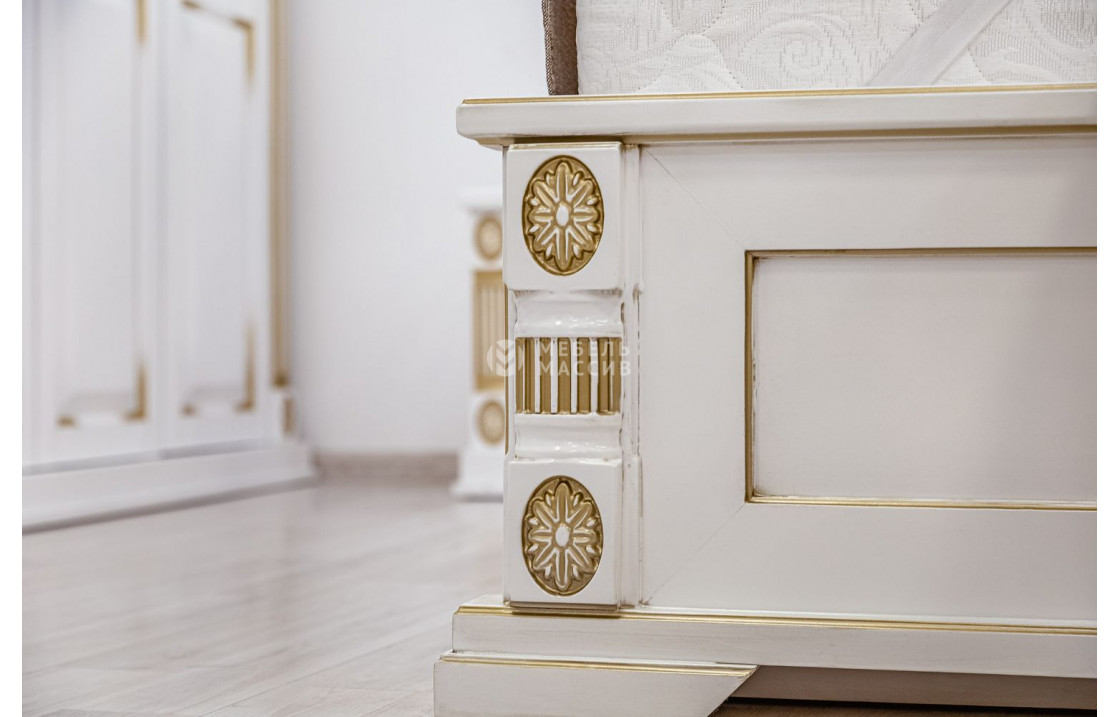 Кровать Пальмира (белая эмаль с золотой патиной)