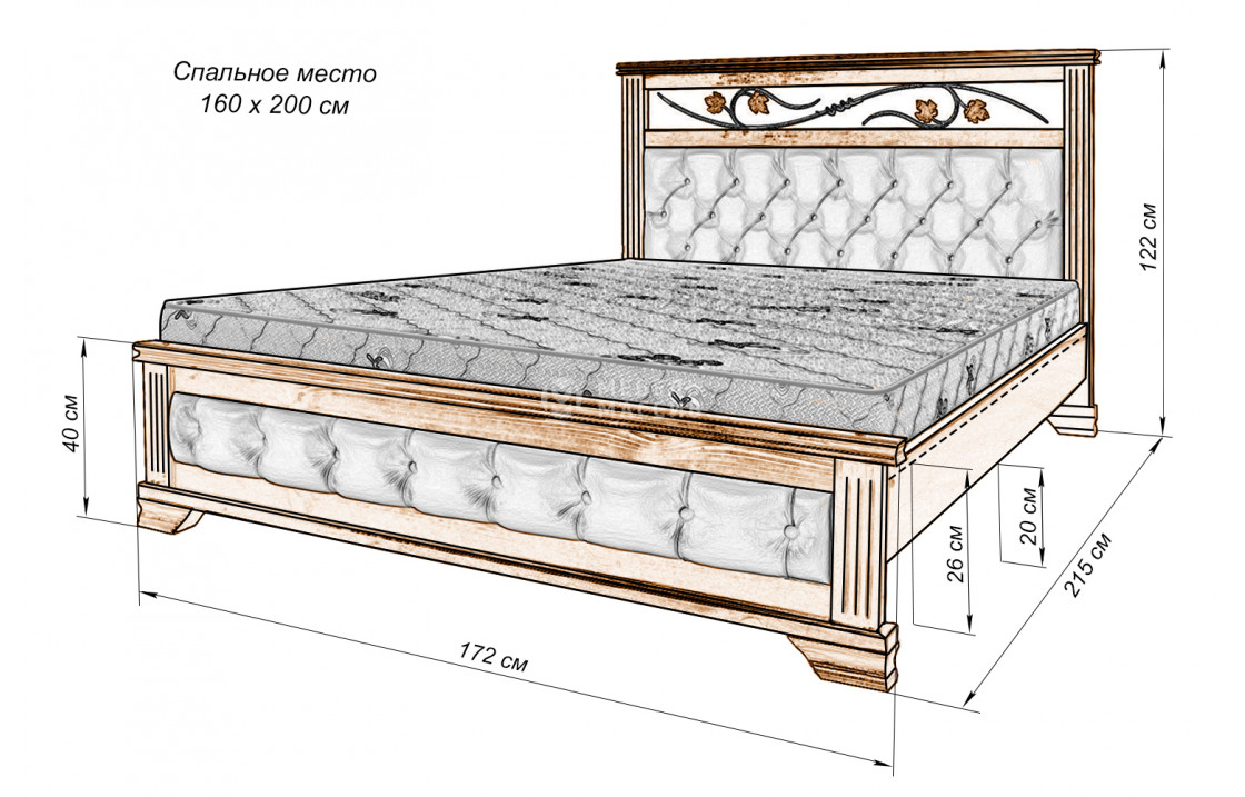 Кровать Лозанна из массива. Осуществляется доставка на дом по Хасавюрту и Республике Дагестан.| Размер | Цена | |