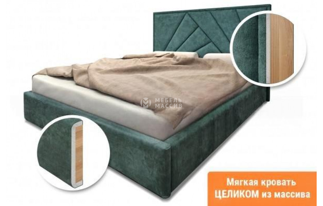 Мягкая кровать "Женева" из натурального дерева и ткани.
