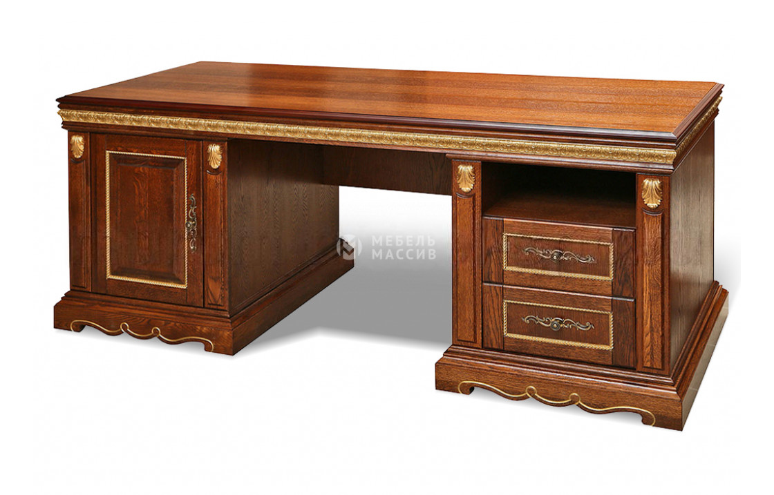 Письменный стол с двумя тумбами из линейки Милано станет основным элементом рабочего места в кабинете. Он располагает симметричной конструкцией с большой столешницей и двумя отделениями, где расположены распашной шкаф, открытая полка и пара ящиков на направляющих. Полезной площади стола хватит для размещения большого объема канцелярии, бумаг и прочих предметов для работы. Комфорта эксплуатации добавит тот факт, что изделие изготовлено из настоящего дерева – экологичного материала, безопасного для человека. Доставка по Хасавюрту и Республике Дагестан.| Размер | Цена | |